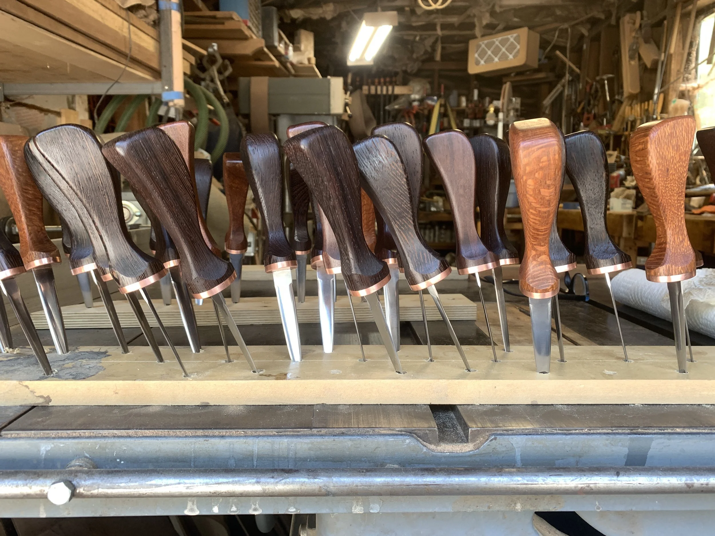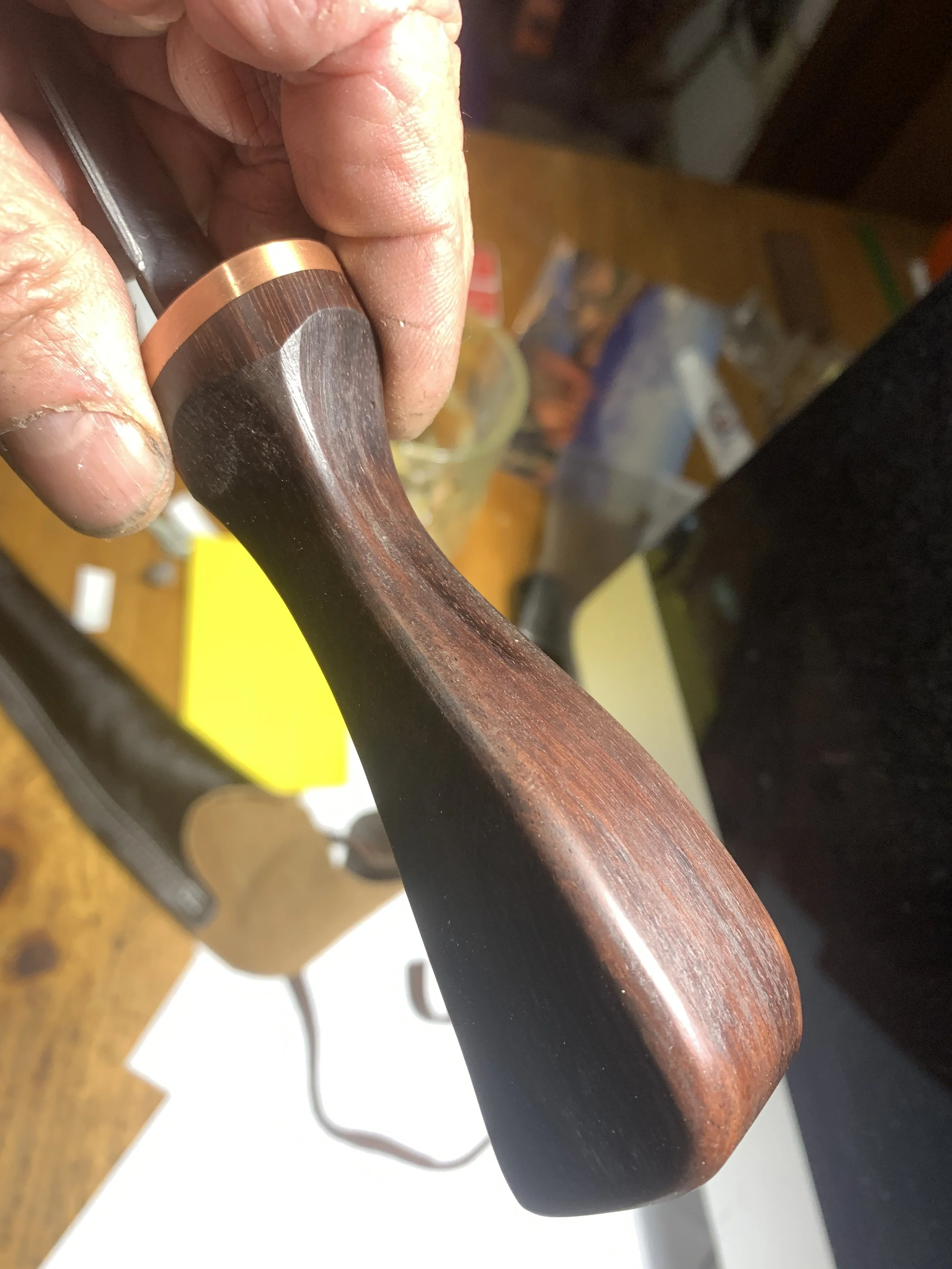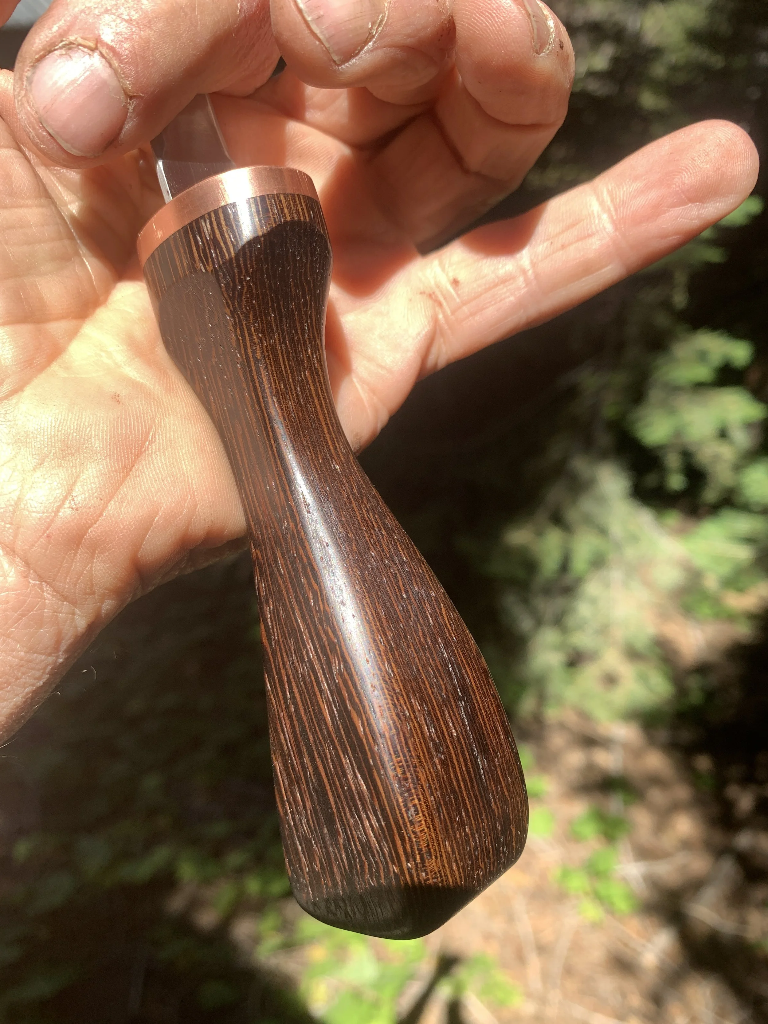 Choose the wood you likeeach is very hard and will make a wonderful handle Tahoma Oyster Shucker with a bocote wood handle plus a leather sheath $155.00 Tahoma Oyster Shucker with a jatoba handle, includes a leather sheath $155.00 Tahoma Oyster Shucker with a lacewood handle and a leather sheath $155.00 Tahoma Oyster Shucker with a wenge handle and a leather sheath $155.00 Tahoma Oyster Shucker with a katalux handle and a leather sheath $155.00